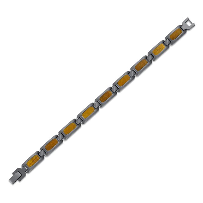 S.ST bracelet with Natural tiger eye inlaid, as pic