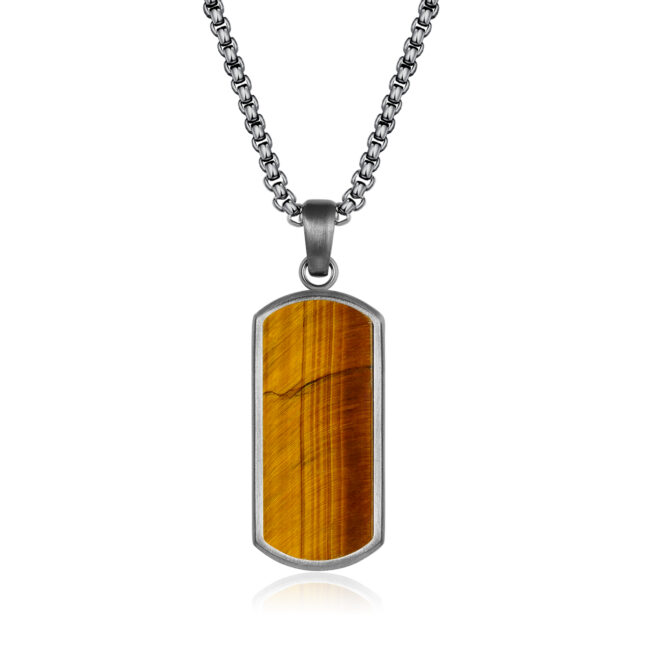 Unisex 316L Stainless Steel small dog tag pendant with natural Tiger Eye inlay