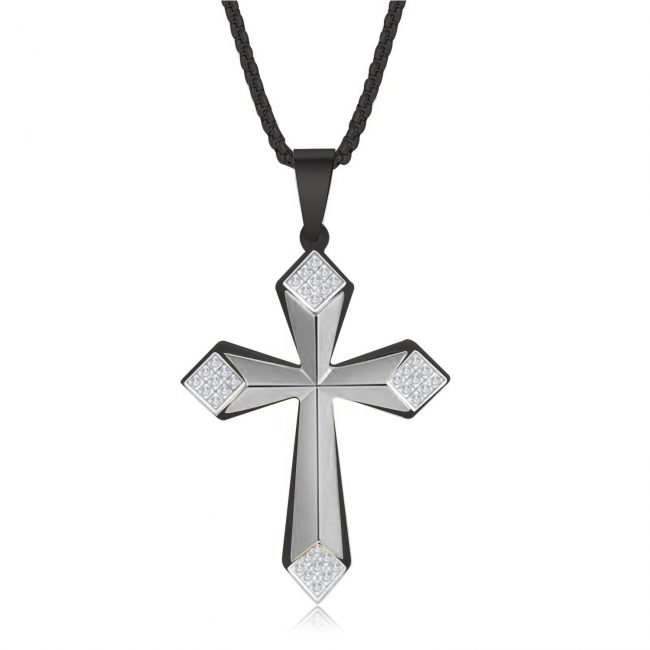 316L Stainless Steel High-end Cross Pendant Black Plated With White CZ & Box Chain