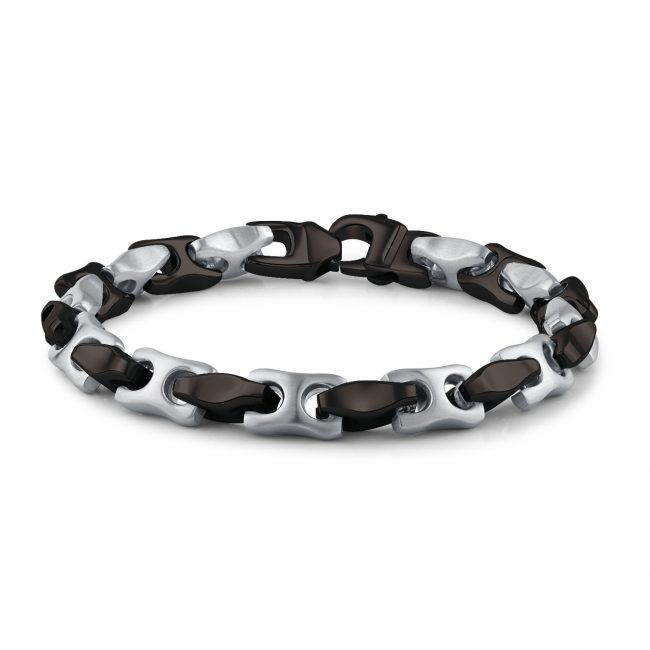 Men’s 316L Stainless Steel Brushed and Polished Finish Black IP Plated H Links Bracelet