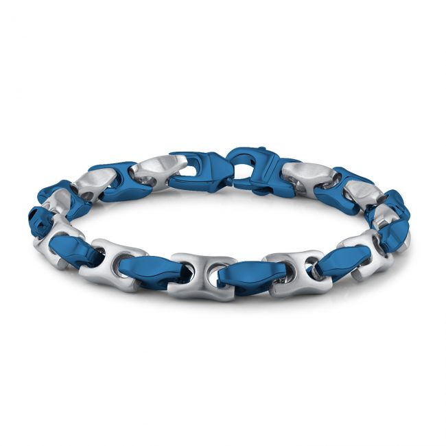 Men’s 316L Stainless Steel Brushed and Polished Finish Blue IP Plated H Links Bracelet