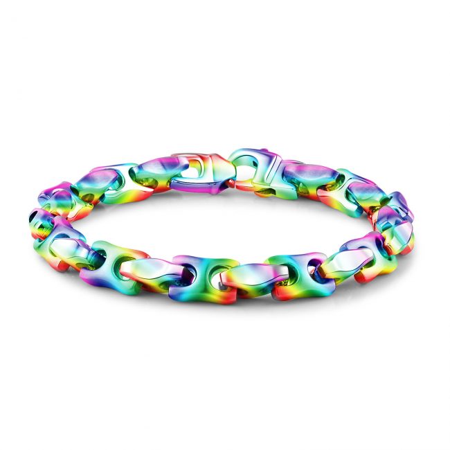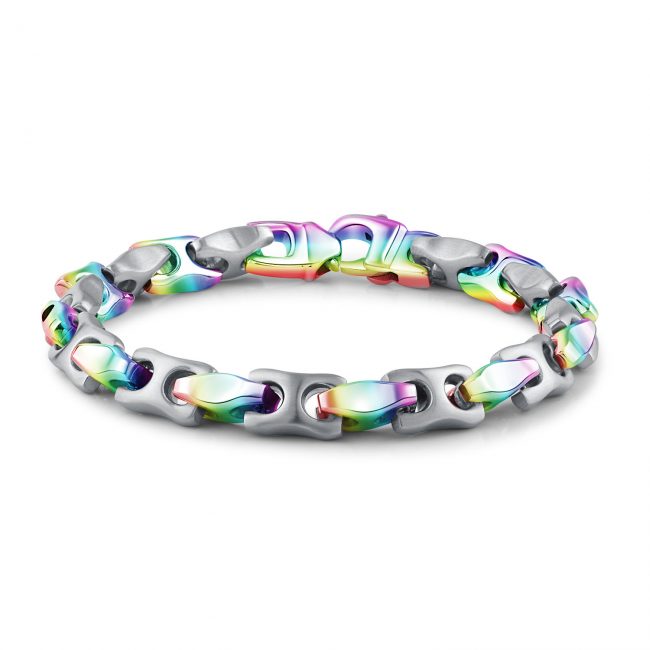 Men’s 316L Stainless Steel Brushed and Polished Finish Rainbow IP Plated H Links Bracelet