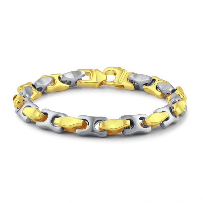 Men’s 316L Stainless Steel Polished Finish Links Bracelet With Gold IP Plated