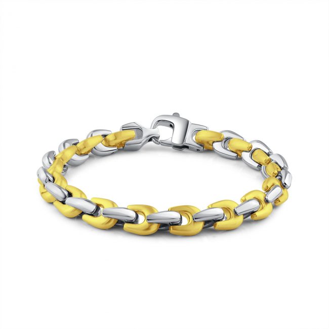 Men’s 316L Stainless Steel Brushed and Polished Finish Gold IP Plated U Links Bracelet