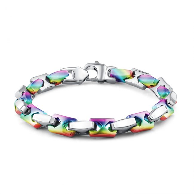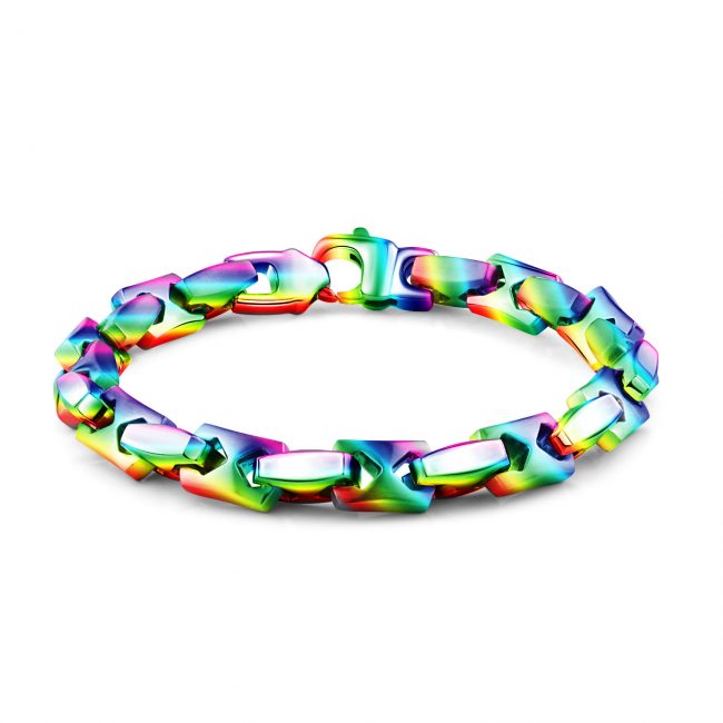 Men’s 316L Stainless Steel Brushed and Polished Finish Rainbow IP Plated H Links Bracelet