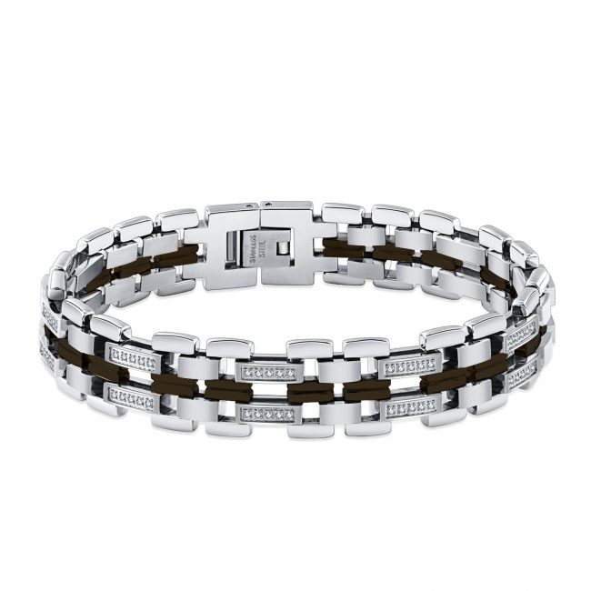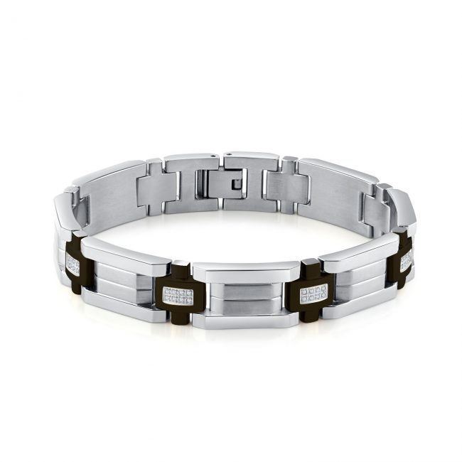 Men’s 316L Stainless Steel Polished Finish Black Plated Links Bracelet With White CZ