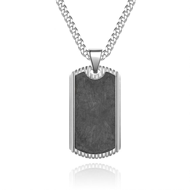 316L Stainless Steel Solid Carbon Dog Tag Pendant With Curb Chain