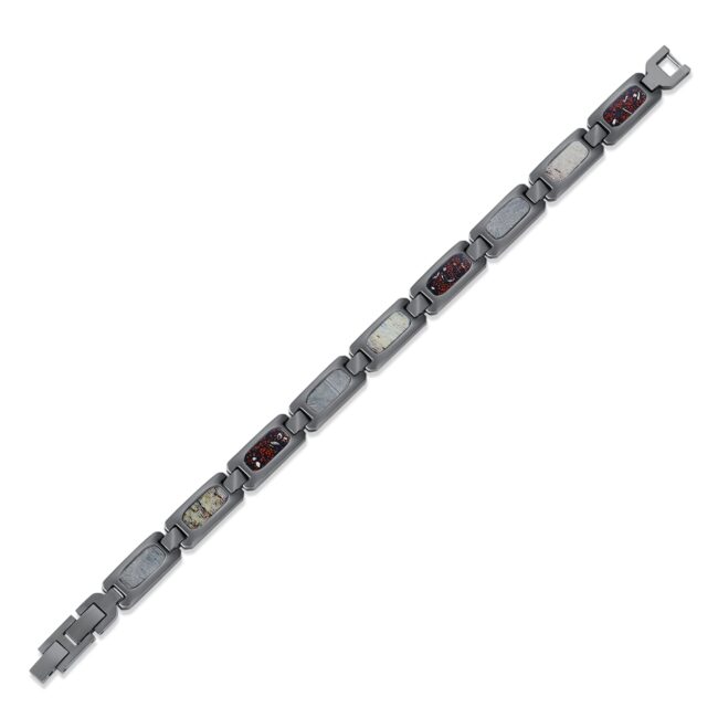 S.ST bracelet with Natural deer antler, red Dino bone & Meteorite inlaid, as pic