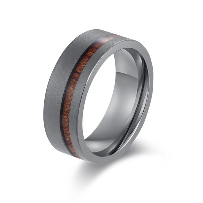 S.ST ring with inlaid natural cask wood, as pic