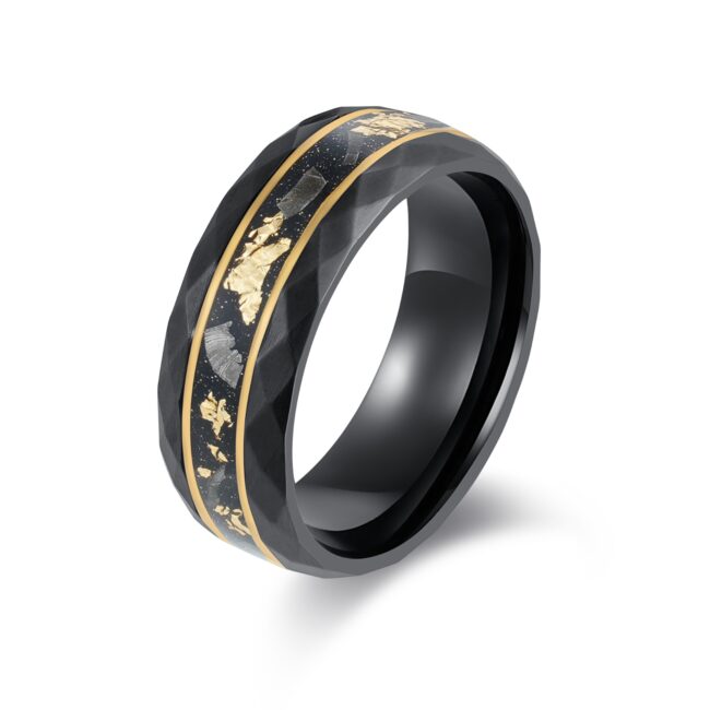 Hammered S.ST ring with natural black sand golden inlay, as pic