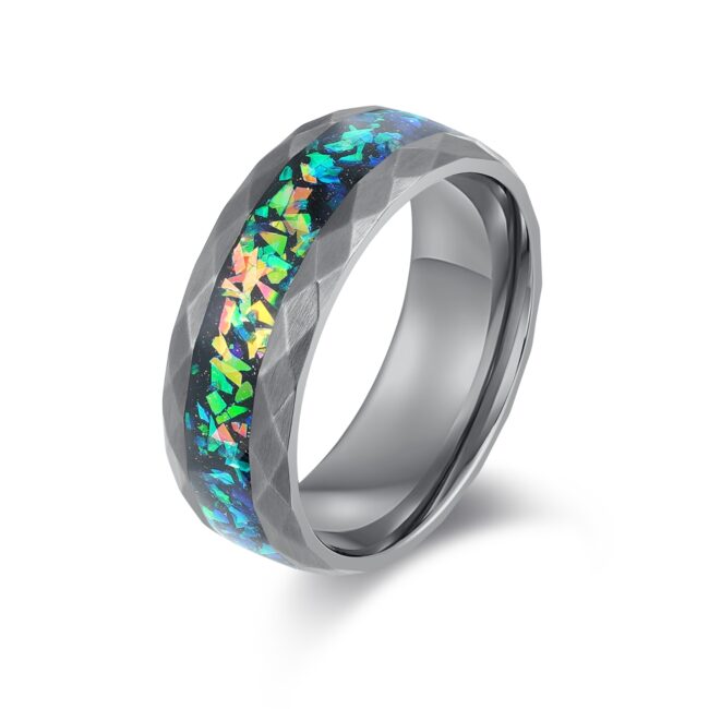 Hammered S.ST ring with natural colorful opal inlay, as pic