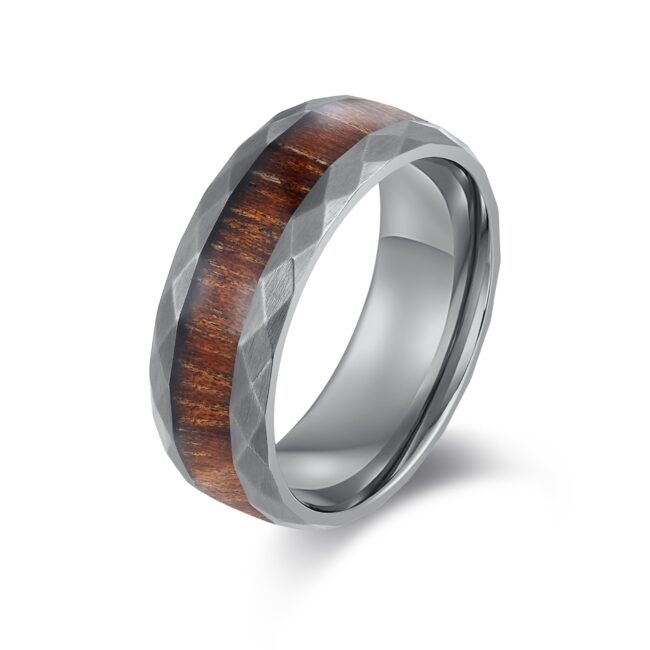Hammered S.ST ring with natural cask wood inlaid, as pic