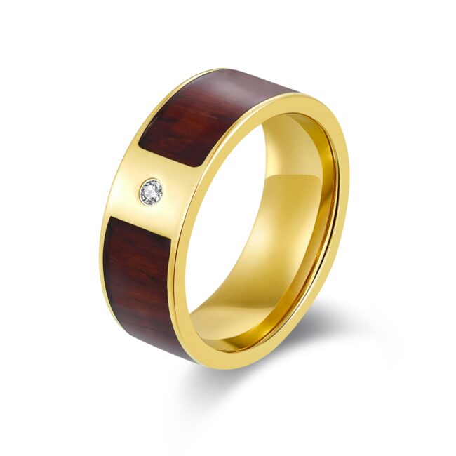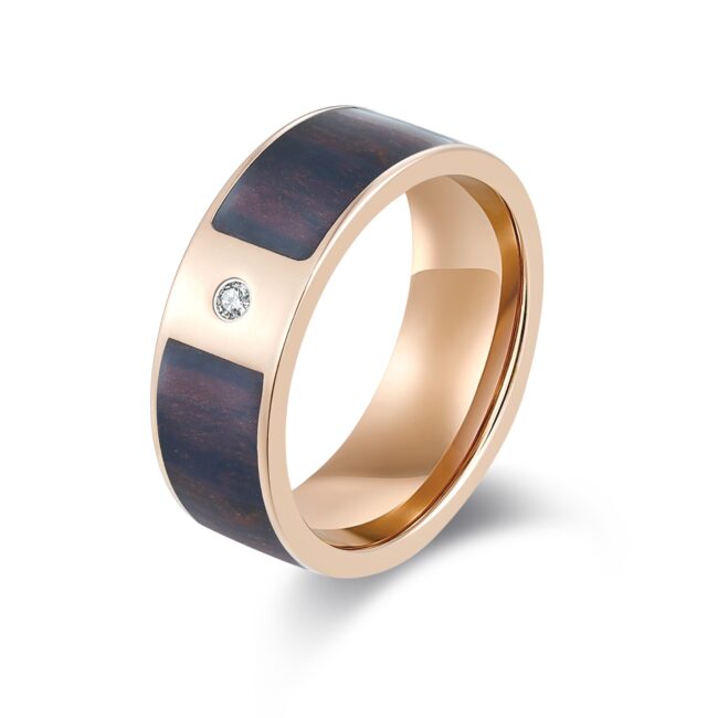 S.ST ring with natural wood inlaid and white CZ, as pic