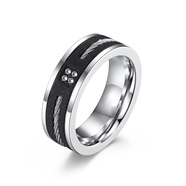 Sandblast Black IP Plated Stainless Steel With Steel Wire Ring