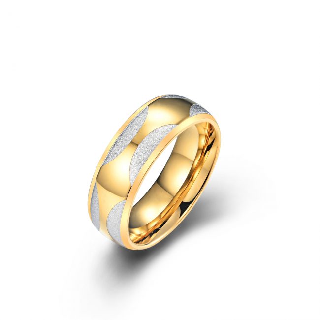 Shiny Yellow Gold IP Plated & Sandblast Stainless Steel Ring