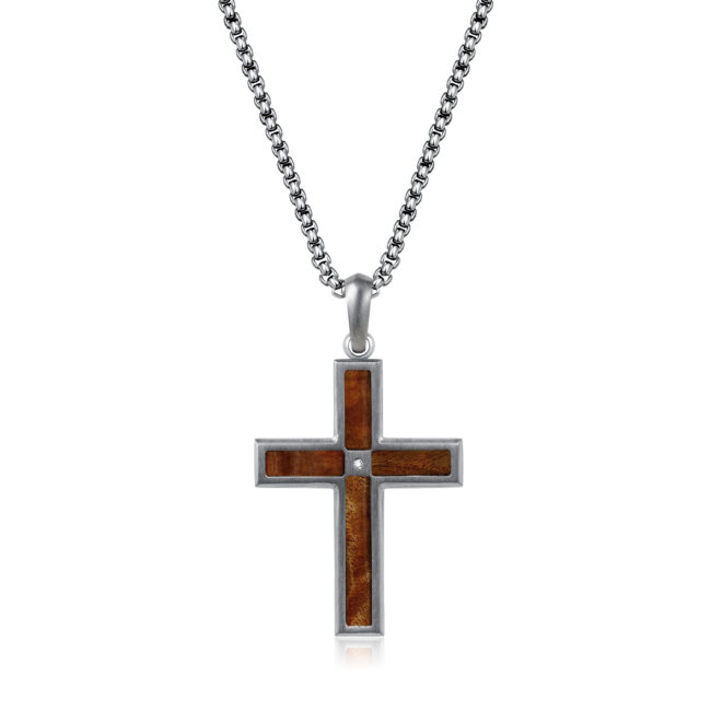 S.ST cross pendant with Natural cask wood inlaid, as pic