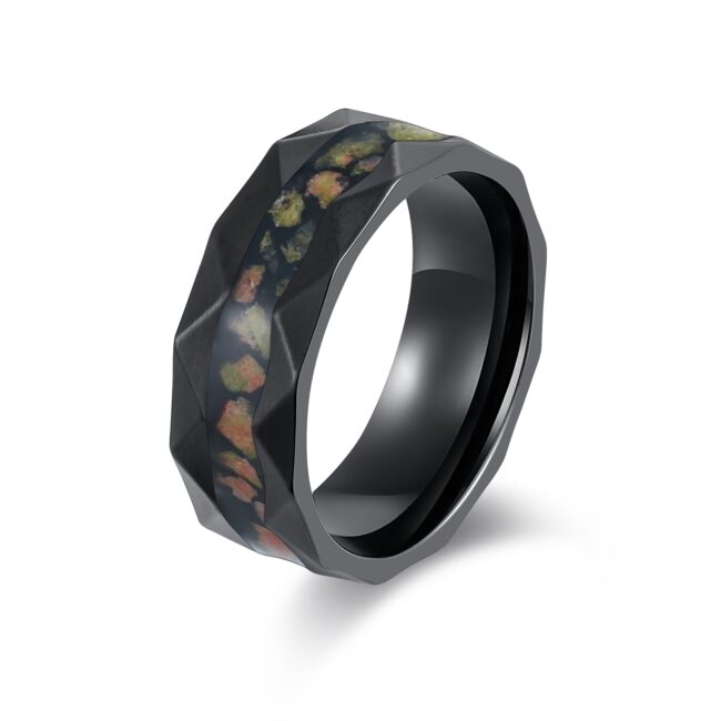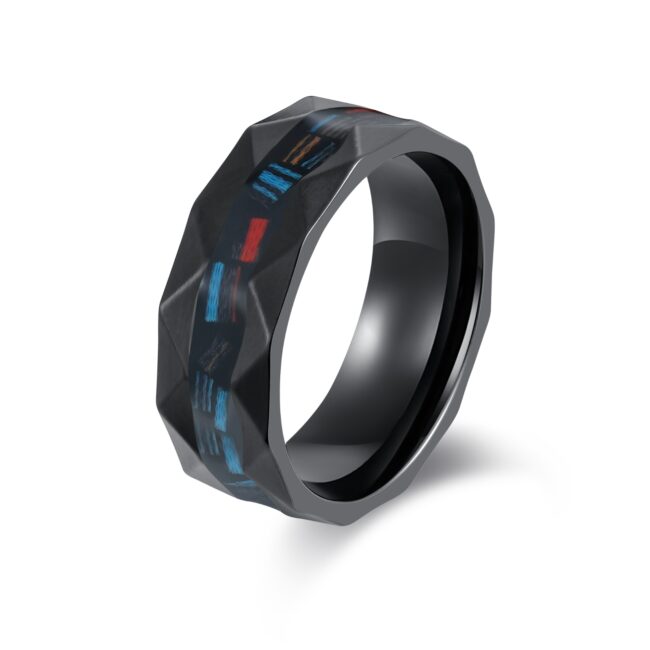 Hammered S.ST ring with colorful forged carbon fiber inlaid, as pic
