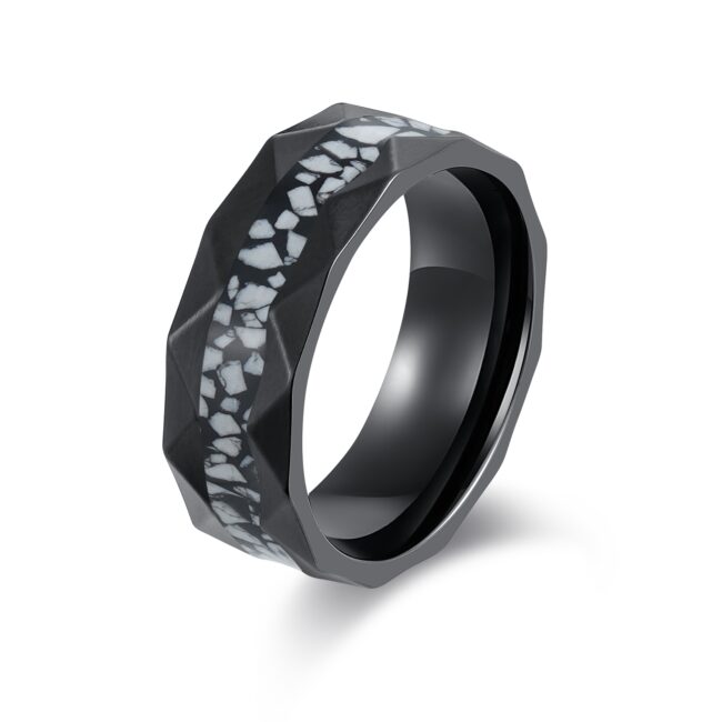 Hammered S.ST ring with natural marble stone inlaid, as pic