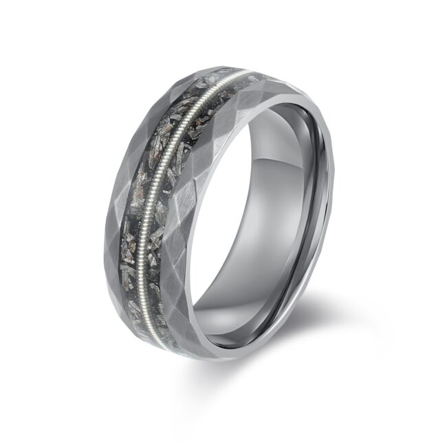 Hammered S.ST ring with natural steel filing guitar strings inlay, as pic