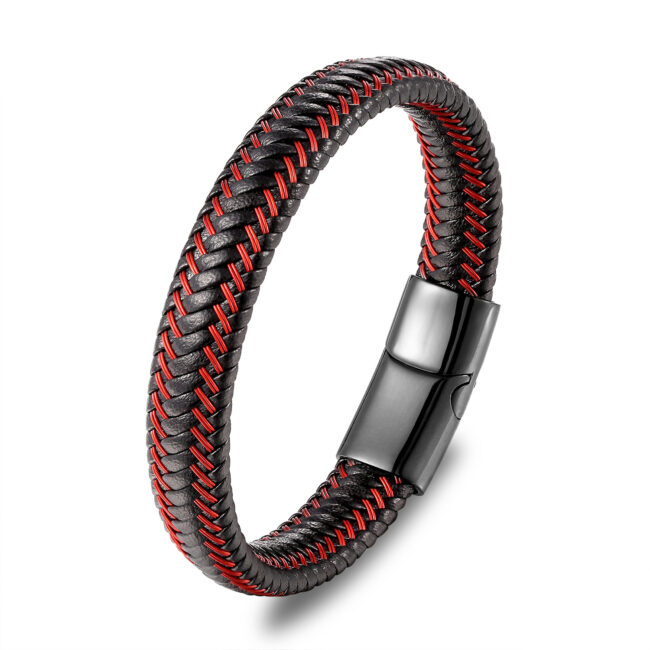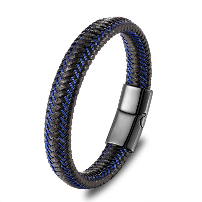 Men’s Cowhide Black Leather Combination bracelet with Stainless Steel magnetic clasp bangle, available with Blue/Brown/Red leather rope colors