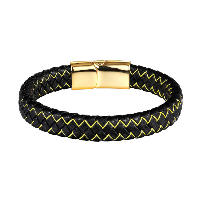 Men’s Stainless Steel Triple Woven bracelet bangle with IP Black/Yellow Gold/Steel magnetic clasp and White/Blue/Red/Yellow thread color