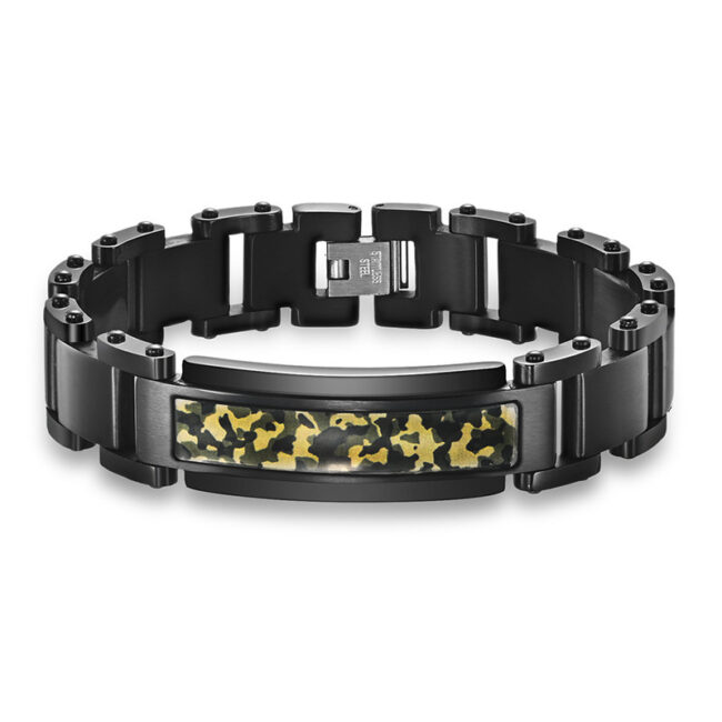 316L Stainless Steel black IP bracelet with camouflage inlay, bracelet