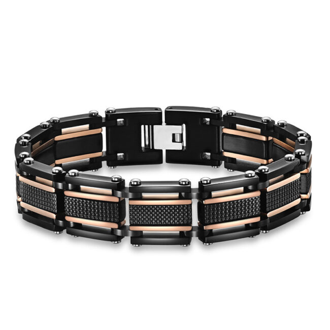 316L Stainless Steel & IP plated bracelet in Steel/Black/Gold