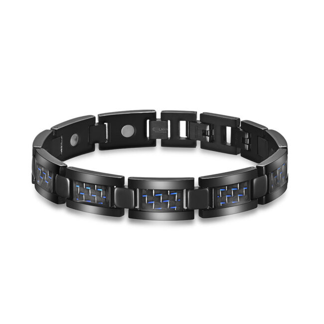 Titanium bracelet with blue and black solid carbon fiber in IP Black