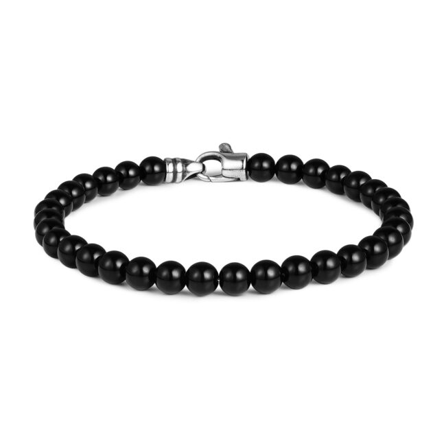 Men’s Stainless Steel beaded bracelet with 6mm shiny black onyx 35pcs