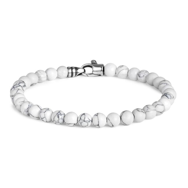 Men’s Stainless Steel beaded bracelet with 6m howlite 35pcs