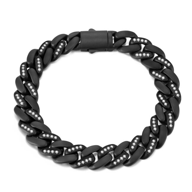 width 12mm length 8/8.5/22/24 inch High-end matte finish new powder casting rounded with white stone sets link chain bracelet/necklace in IP black matte plating