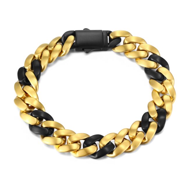 width 12mm Length 8″/24″ High-end New powder casting rounded link chain with Matte Finish Two Tone plated as IP 18K Gold & Black bracelet/necklace