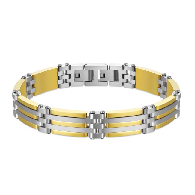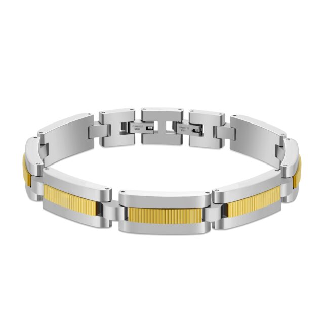 Men’s 316L Stainless Steel matte Finish Links Bracelet with IP Yellow Gold