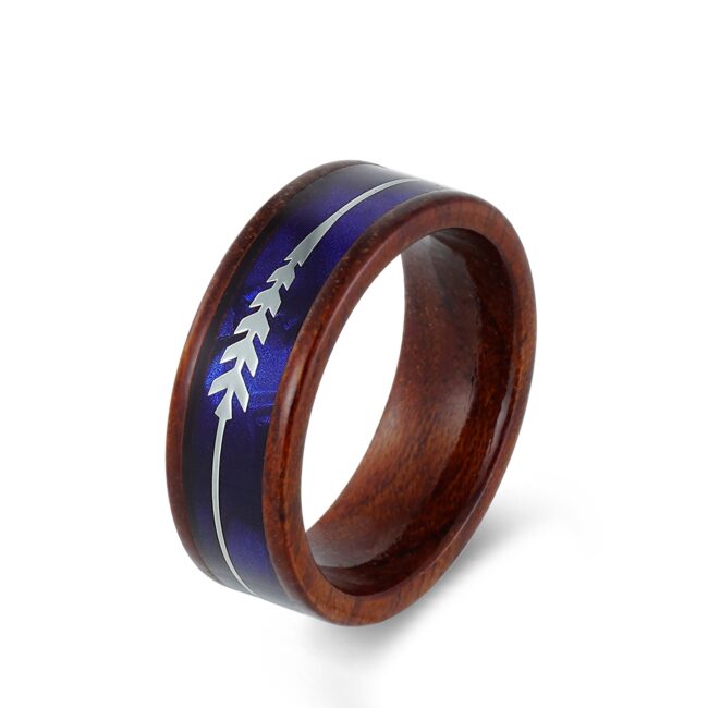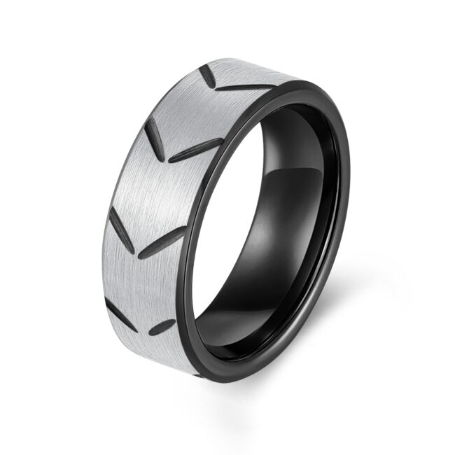 8mm-Tungsten/S.st/Titanium Polished ring with treeline pattern in IP Black