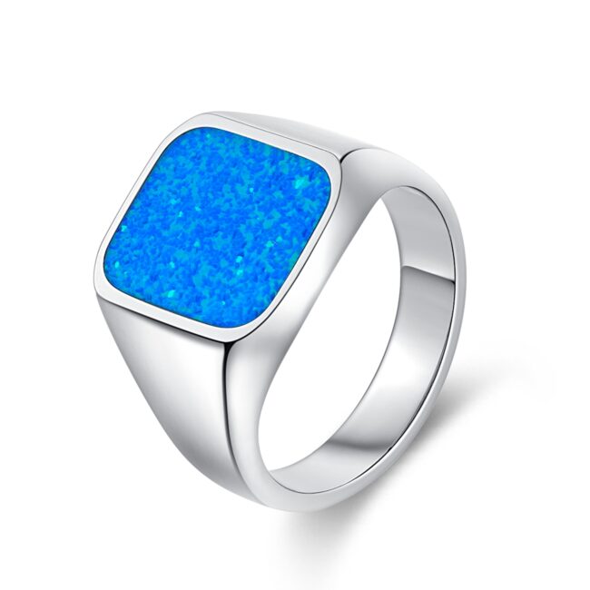 8mm-Tungsten/S.st/Titanium Polished signet ring with blue opal inlay