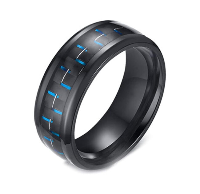 Men’s 8mm Tungsten Carbide Blue Carbon Fiber inlay Ring Wedding Band