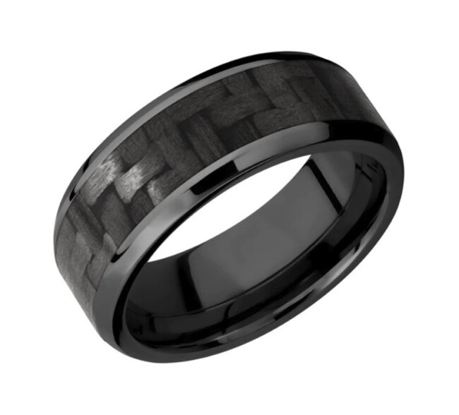 Men’s 8mm Tungsten Carbide Black Carbon Fiber inlay Ring Wedding Band