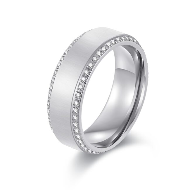 Men’s Brushed Stainless Steel wedding ring/band with White CZs