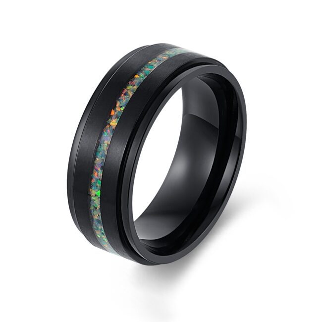 Men’s Brushed and Polished Stainless Steel wedding ring/band with Opal inlay
