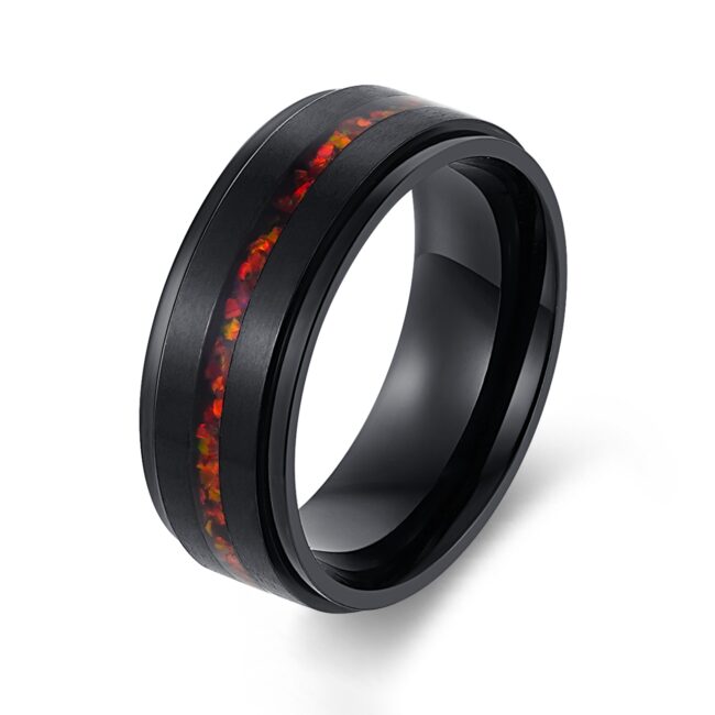 Men’s Brushed and Polished Stainless Steel wedding ring/band with Red Opal inlay