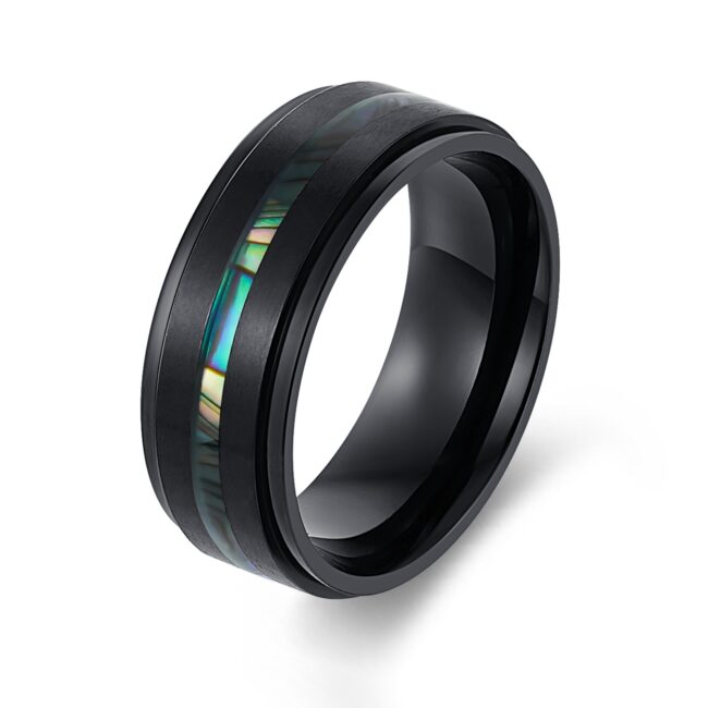 Men’s Brushed and Polished Stainless Steel wedding ring/band with Abalone Shell inlay