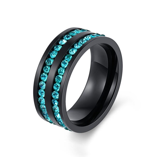 Men’s Brushed and Polished Stainless Steel wedding ring/band with Light Blue CZs and IP Black