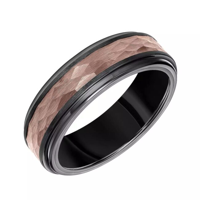 Men’s Brushed Stainless Steel/Titanium hammer 3 parts combination wedding ring