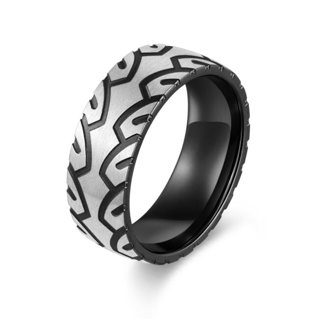 Men’s Brushed Stainless Steel/Titanium wedding ring with tire pattern Smooth Comfort Fit with blue/black/18K gold IP Plated Color as pic