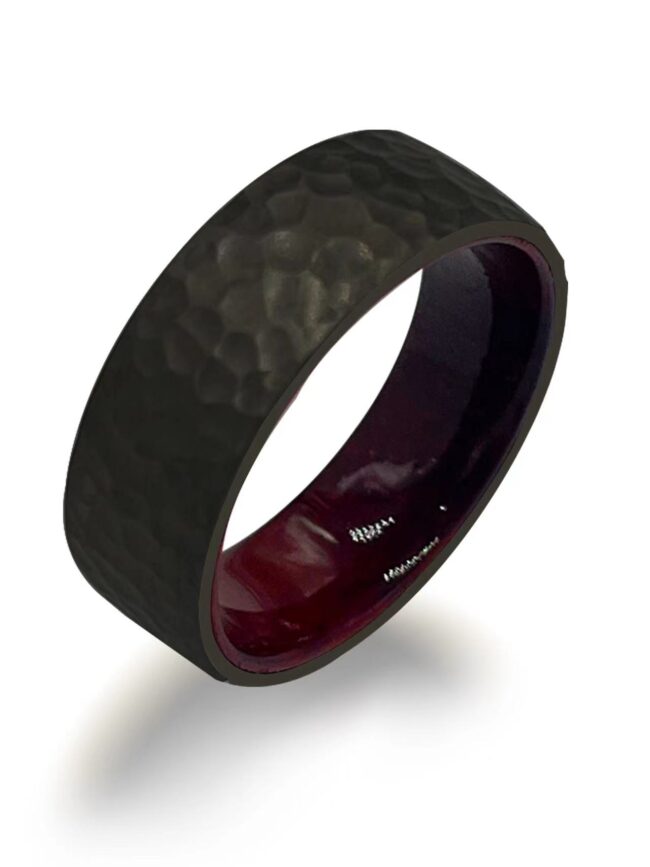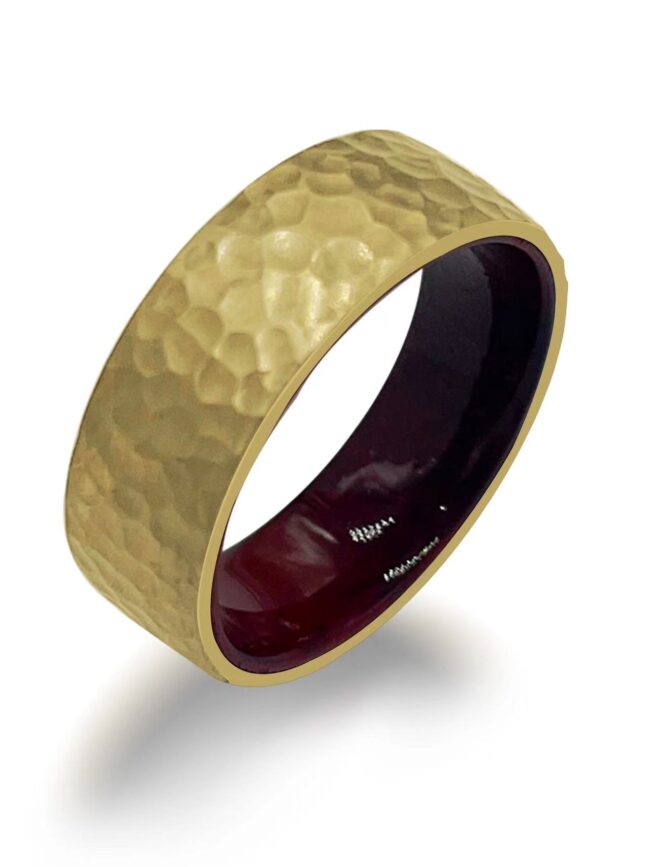 Men’s Brushed Stainless Steel/Titanium hammer wedding ring Smooth Comfort Fit with 18K gold/black/blue IP Plated Color as pic