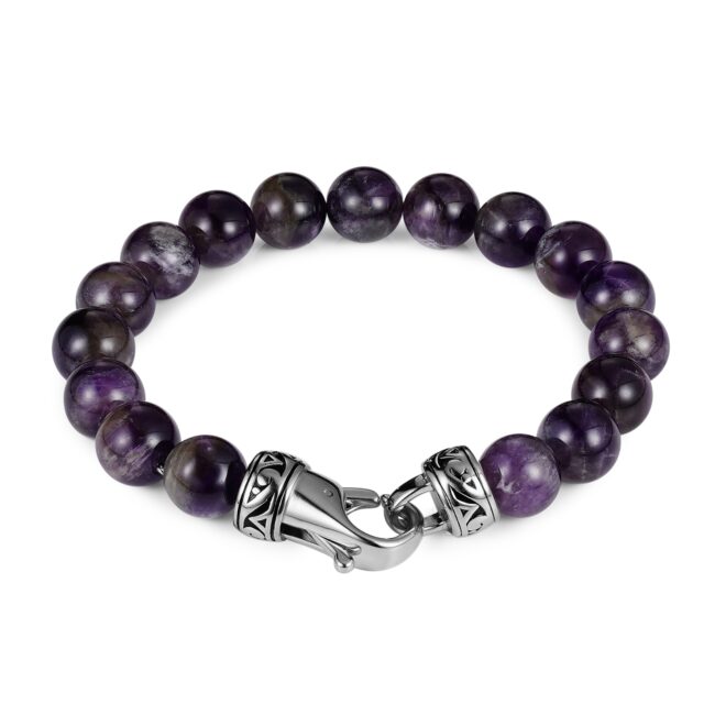 Men’s Stainless steel beaded (10mm with 18pcs) bracelet with amethyst stone