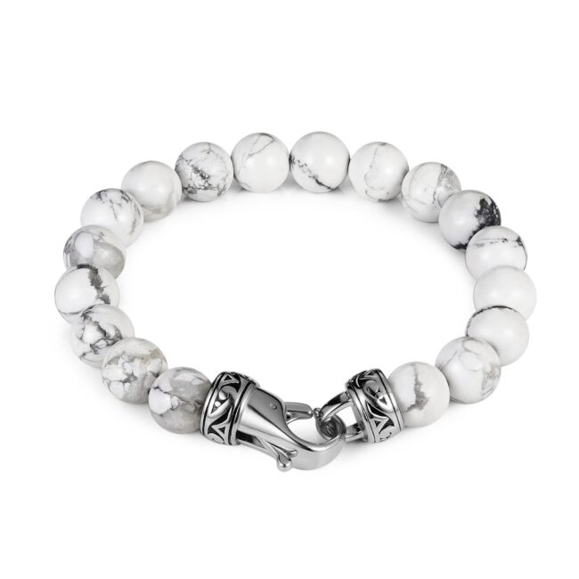 Men’s Stainless steel with Howlite Gem Semi Precious (10mm with 18pcs) Beads bracelet