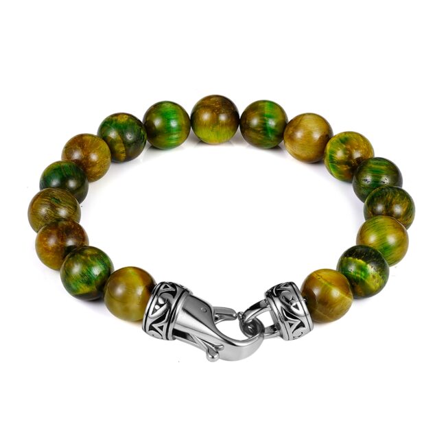 Men’s Stainless steel beaded (12mm with 15pcs) bracelet with Multi Color Tiger Eye Beads stone