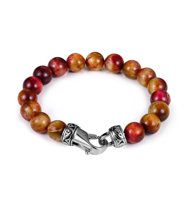 Men’s Stainless steel beaded (10mm with18pcs) bracelet with red Tiger’s eye stone