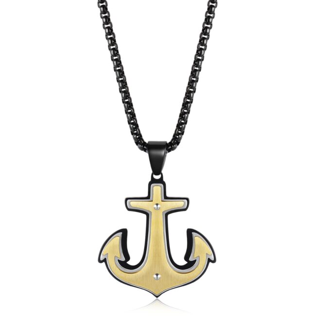 Men’s Stainless Steel Three Layered Anchor Pendant, available in Steel/Black/Gold colors